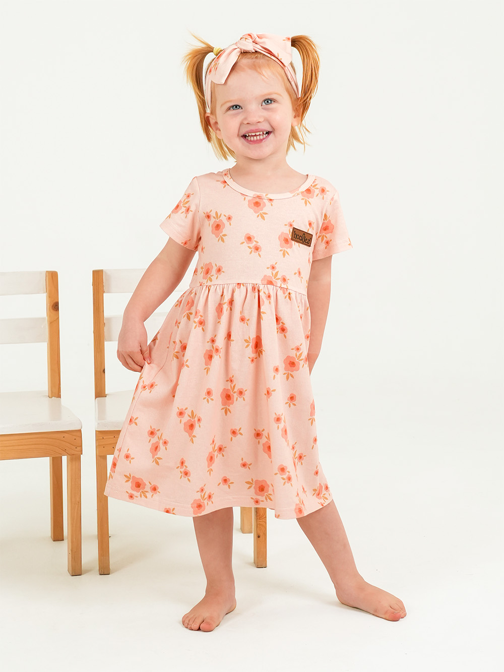 Let her blossom in summer sweetness with our girls’ dress in the Blush Meadows print, a soft blend of pink and peach florals. Made from breathable 100% cotton, this dress is lightly gathered for a floaty, comfortable fit that’s perfect for warm days. Paired with a matching headband, it’s a darling choice for play, parties, and picture-ready moments. Easy, airy, and adorable—her go-to dress for the sunny season.