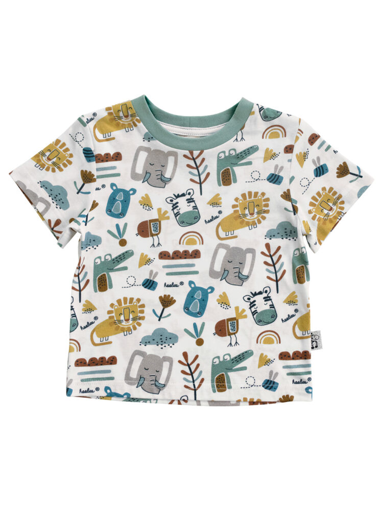 PREMIUM SAFARI Boys Tee (resellers only) Stunning Signature Safari all-over prints in soft cotton knit. The crew neck has a contrast sage rib.