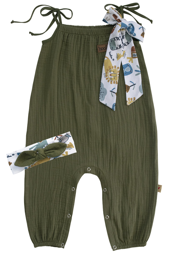 PREMIUM SAFARI – ONLY FOR TOURVEST A light and cool double muslin jumper with a feature bow on the shoulder strap. Includes a headband. Sizes: 1-7 yrs Fabric: Double Muslin Cotton Trims: Label, Press studs on smaller sizes. Size Chart – Reviews – About us