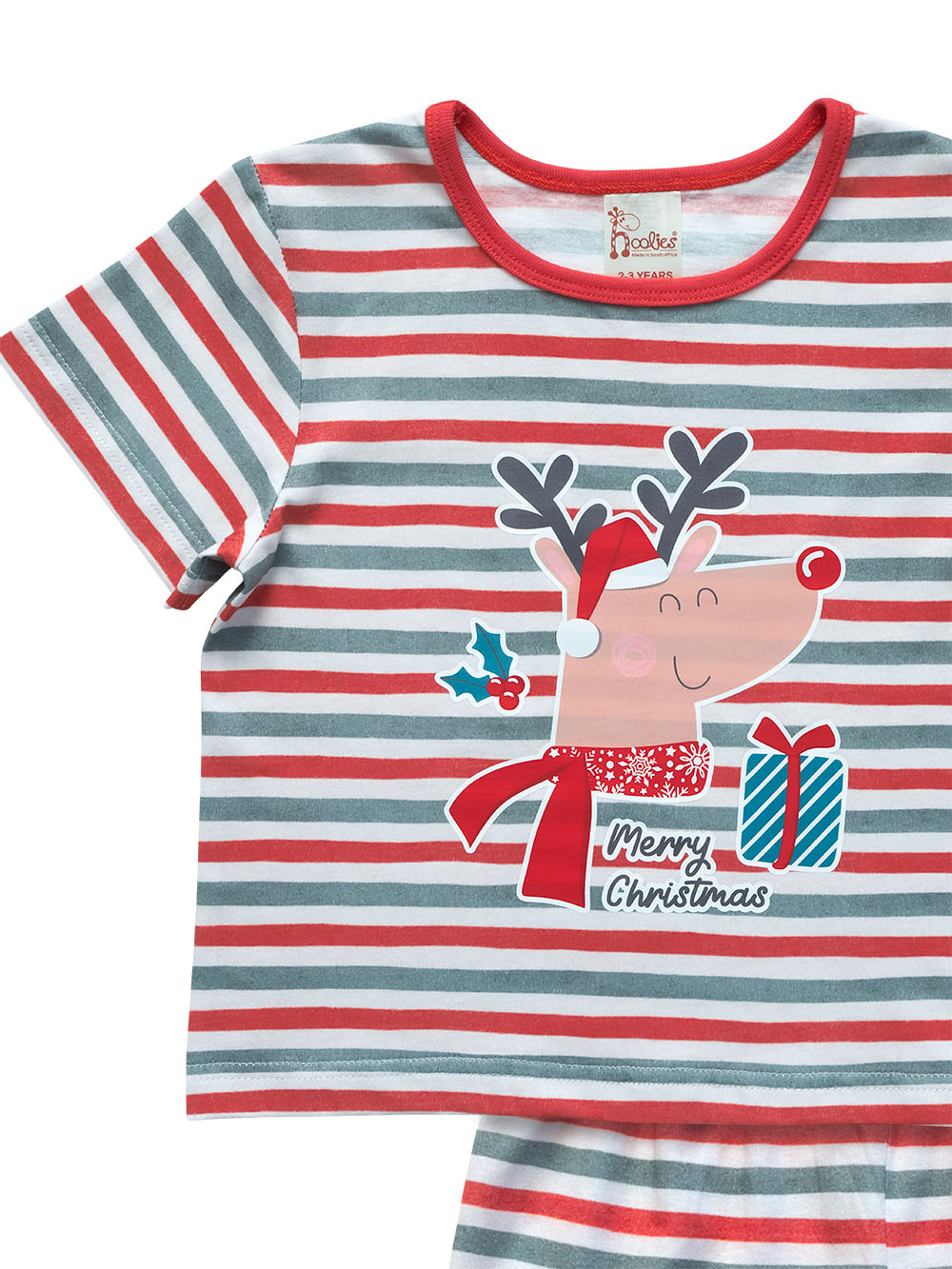 Make the holidays extra magical with our Kids Christmas Pyjamas from Hoolies. This festive set features classic candy-stripe pants paired with the sweetest reindeer print tee – a look that’s as fun as it is comfy. Crafted from soft, breathable cotton, these pyjamas are perfect for cozy nights, early morning gift unwrapping, and all the Christmas excitement in between.
