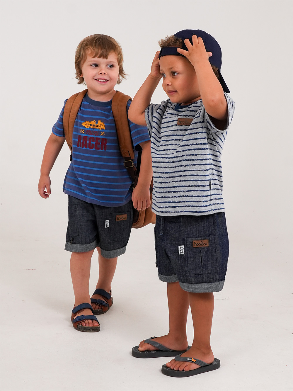 This 2‑pack tee set is crafted from pure cotton for breezy, all‑day comfort. One tee lines up with an zooming car print, while the other cools down with a navy stripe—perfect for mixing, matching, and making sunny days even brighter.