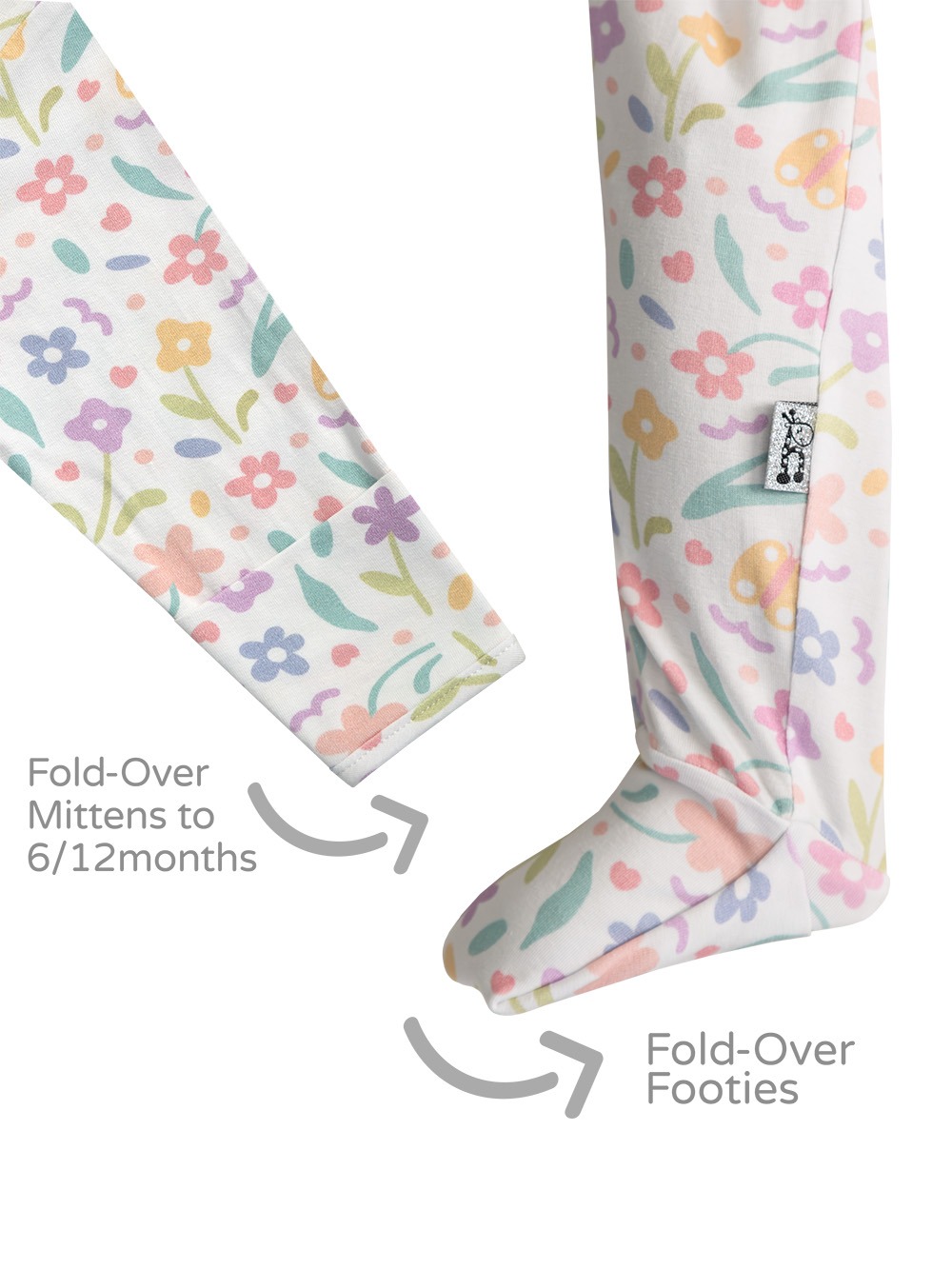 Roomy fit, breathable softness, fold-over footies, built-in mittens (up to 12 months), and a two-way zip for easy changes—all wrapped up in proudly South African cotton with a comfy hint of elastane.