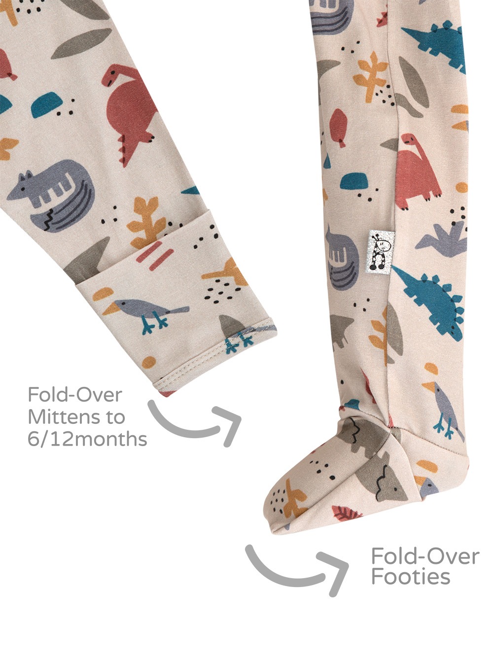 Roomy fit, breathable softness, fold-over footies, built-in mittens (up to 12 months), and a two-way zip for easy changes—all wrapped up in proudly South African cotton with a comfy hint of elastane.