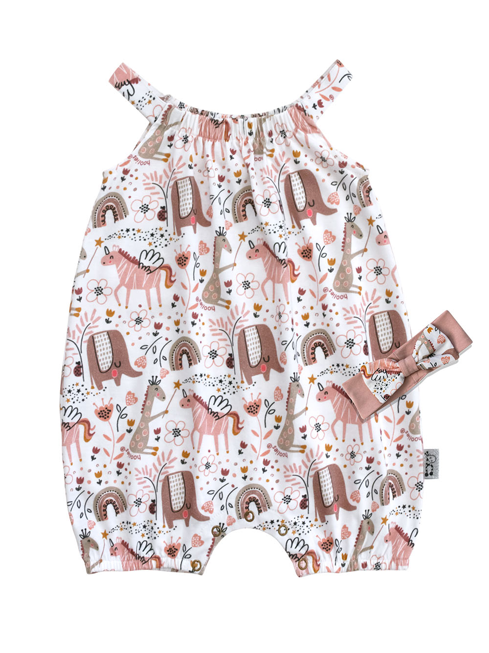 PREMIUM SAFARI A gorgeous baby romper in our fabulous Unicorn Safari print. Includes a cute headband to finish off the look.